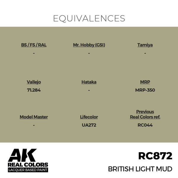 Modelárské akrylové farby typu lacquer primárne určené k nanášaniu pomocou striekacej pištole (airbrush). Vysoko kompatibilné s inými značkami akrylových farieb ako Tamiya alebo Gunze. Riediteľné buď originálnym riedidlom AK High Compatibility Thinner RC701 alebo inými riedidlami značiek Tamiya alebo Gunze, prípadne destilovanou vodou (viac informácií vo videu). Farby je možné použiť aj na štetec. Vyrobené podľa autentických fragmentov skutočných farieb.