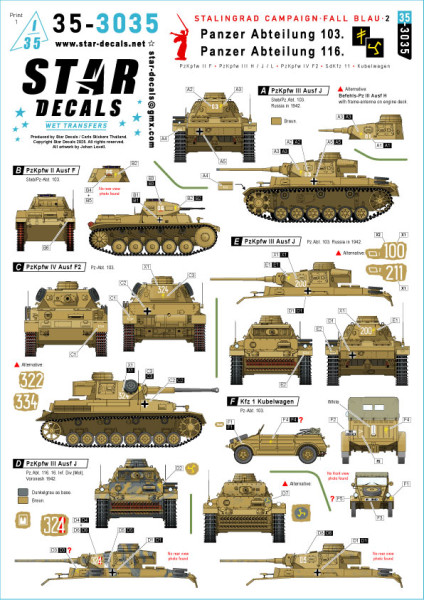Panzer Abt. 103 & Panzer Abt 116. Pz II F, Pz III H/J/L, Pz IV F2, SdKfz 11, Kubelwg.