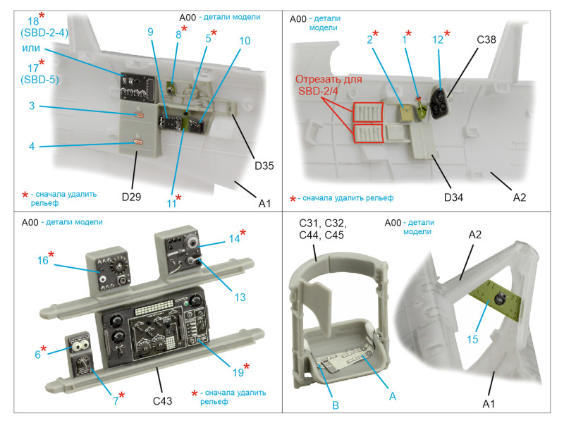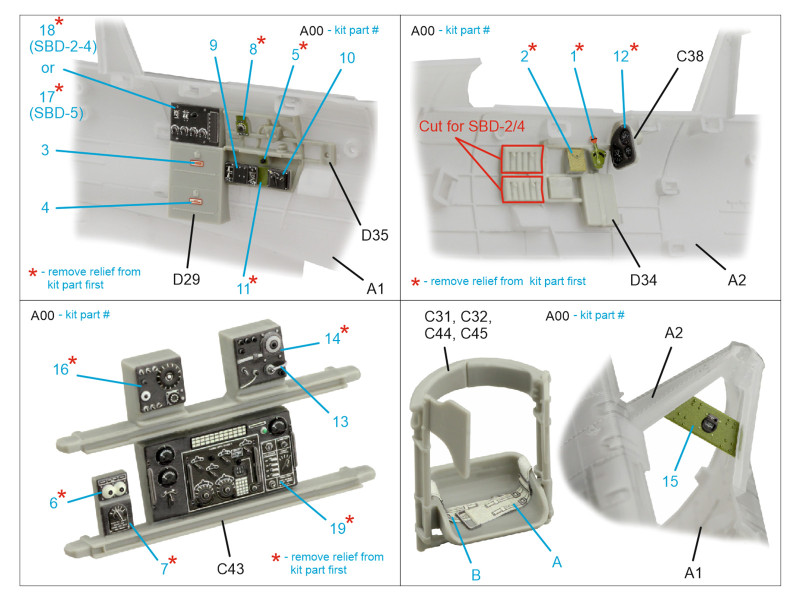 SBD Dauntless Family Rear Cockpit 3D-Printed & coloured Interior on decal paper (Trumpeter) | |