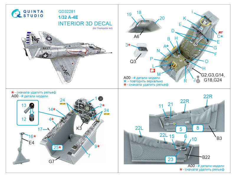 A-4E Skyhawk 3D-Printed & coloured Interior on decal paper (Trumpeter) | |