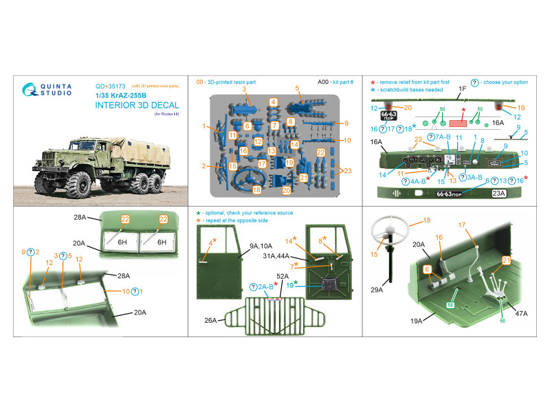 KrAZ-255B 3D-Printed & coloured Interior on decal paper (Roden) (with 3D-printed resin parts) | |