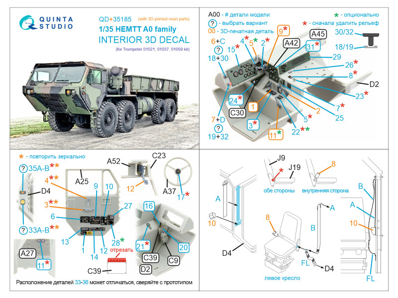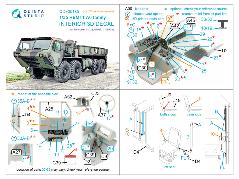 HEMTT A0 Family 3D-Printed & coloured Interior on decal paper (Trumpeter) (with 3D-printed resin par | |
