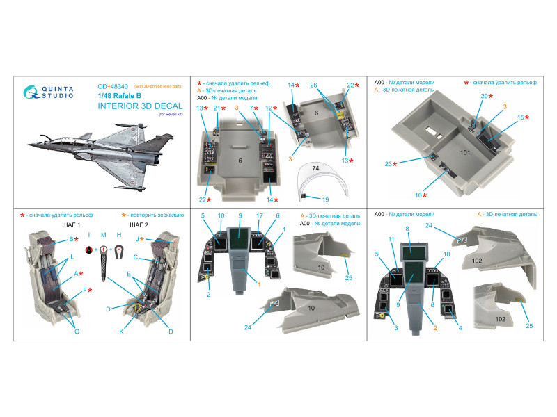 Dassault Rafale B 3D-Printed & coloured Interior on decal paper (Revell) (with 3D-printed resin par | |