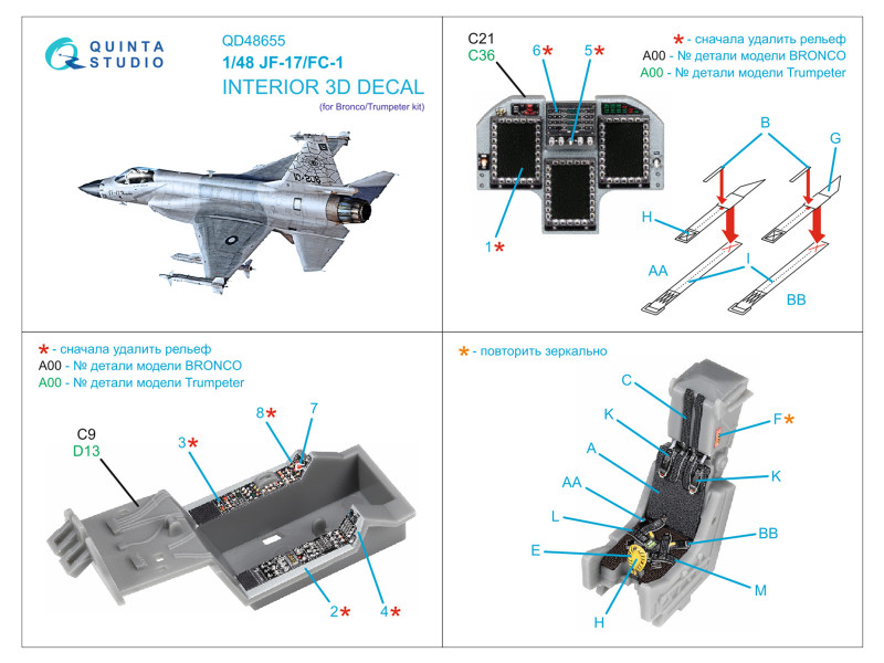 PAC/CAC JF-17/FC-1 3D-Printed & coloured Interior on decal paper (Bronco/Trumpeter) | |