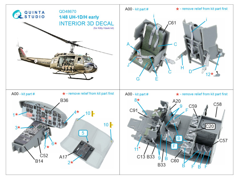 UH-1D early/UH-1H early 3D-Printed & coloured Interior on decal paper (Kitty Hawk) | |
