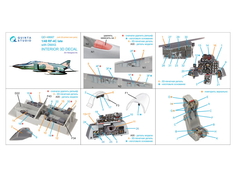 RF-4C Phantom II (late with DMAS) 3D-Printed & coloured Interior on decal paper (Hasegawa) (with 3D- | |