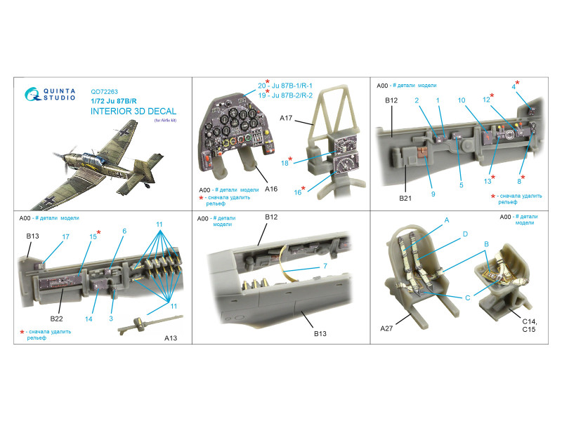 Ju 87B/Ju 87R 3D-Printed & coloured Interior on decal paper (Airfix) | |