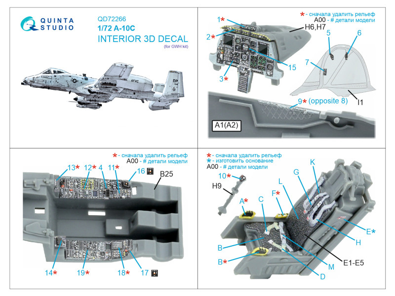 A-10C 3D-Printed & coloured Interior on decal paper (GWH) | |