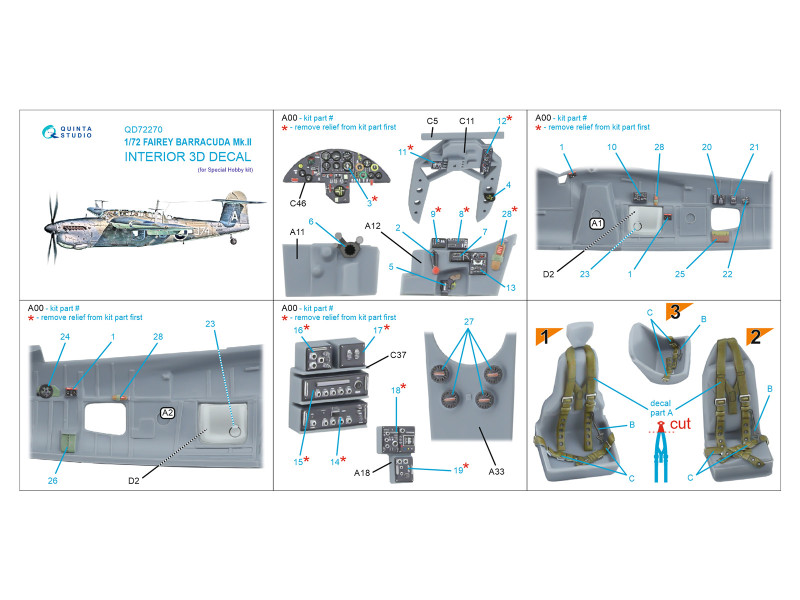 Fairey Barracuda Mk.II 3D-Printed & coloured Interior on decal paper (Special Hobby) | |