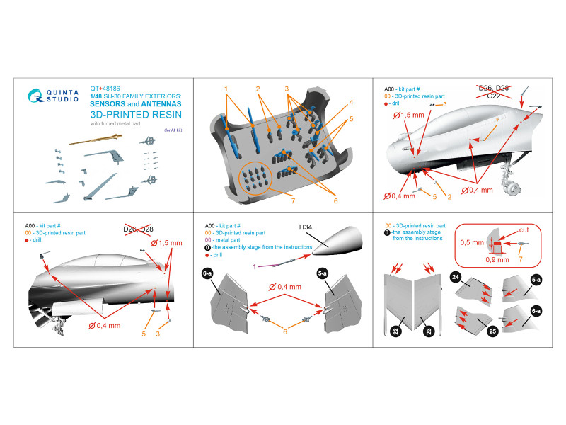 Su-30SM Exterior set: External sensors, Antennas & Pitot tube (for all kits) (3D printed resin and m | |